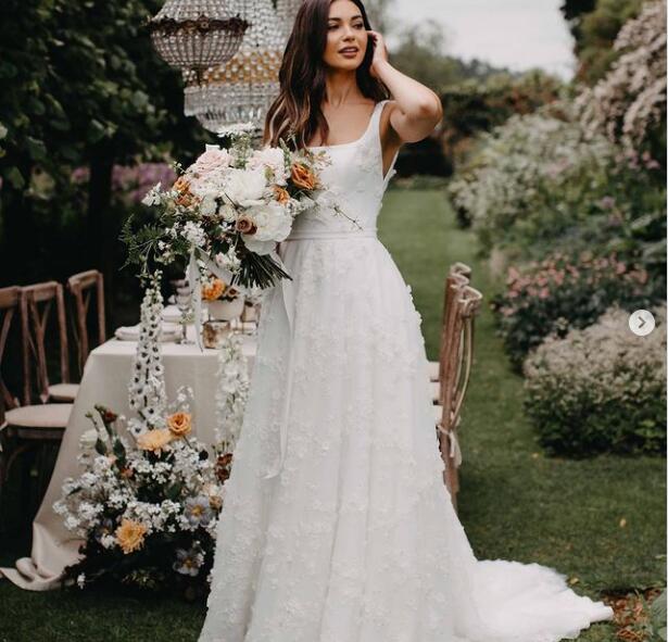 Simple Wedding Dress Lace Applqies Bridal Gonws