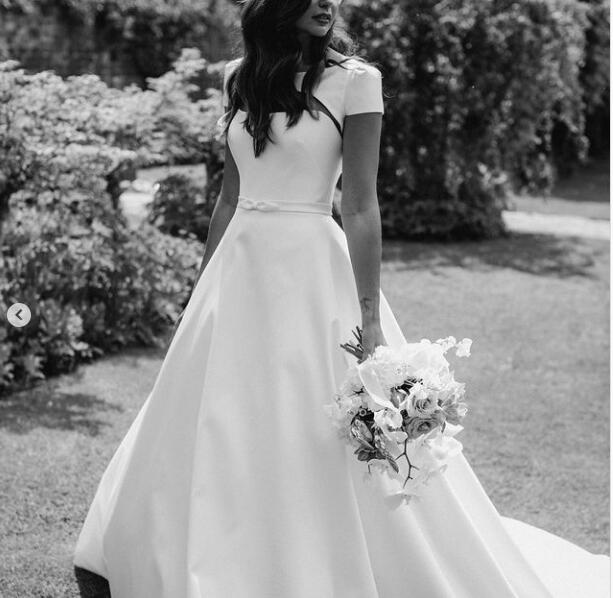 Simple Ball Gown Wedding Dress Short Sleeve Bridal Gonws