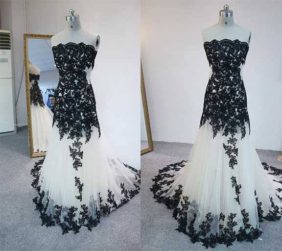 The Charming Wedding Dresses, Floor-Length Wedding Dress, Black Appliques Wedding Dresses
