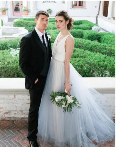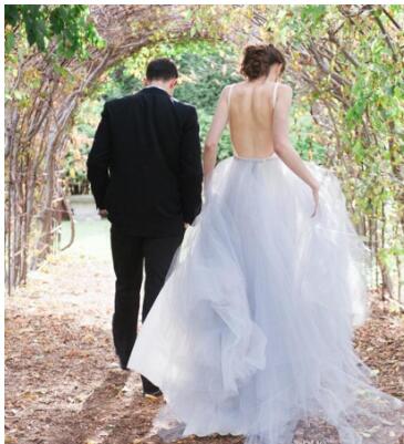 Sexy Backless Wedding Dresses with V neck A Line Ruffles Bridal Gown Custom made White and Dove Blue Beach Vestidos De Novia