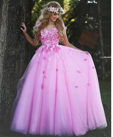 Pink Princess Fantcy Wedding Dresses with handmade Flower Arabic Dubai Custom made A Line Floor Length Garden Colorful Bridal Gown