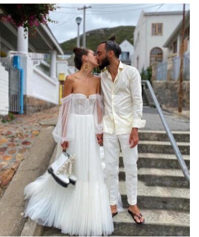 Wedding Dresses Boho Off the Shoulder Long Puff Sleeves Ruffled Wedding Gown A-Line White Ivory Beach Bridal Dress