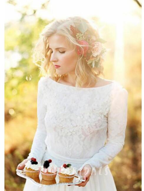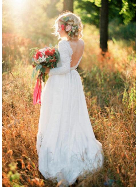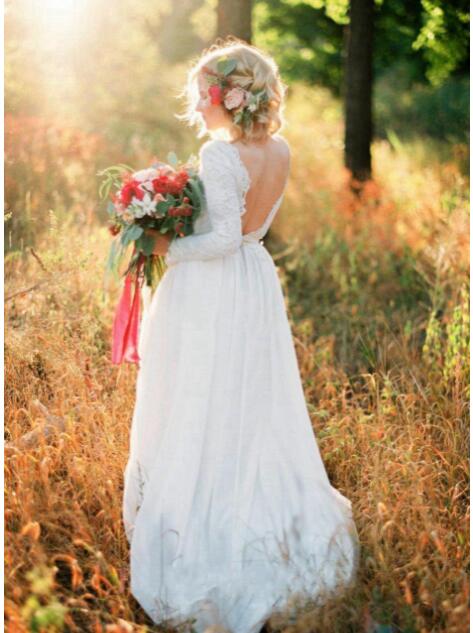Lace Wedding Dresses Crew Neck Boho Beach Bridal Gowns