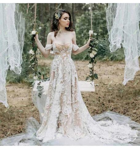 Sexy Aline Lace Wedding Dresses Sweetheart Bohemian Vestidos de Noivas Off The Shoulder Bridal