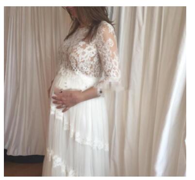 Wedding Dress Pregnant Women Chiffon V-Neck Bridal Gowns With Long Sleeve Floor Length Lace Appliques White Sheer Back