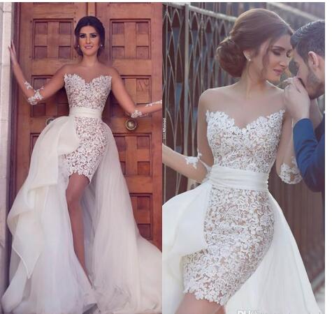 Sexy Sweetheart Sheer Long Sleeve Lace With Tulle Detachable Skirt Wedding Dresses Vestido De Noiva Cheap Beach Bridal Gowns Plus Siz