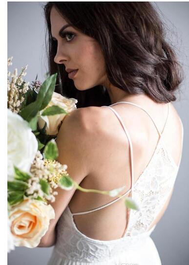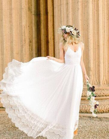 Beach Sexy Lace Sexy Back A line Wedding Dresses Spaghetti sleeveless Illusion Appliques Criss Cross Empire Chiffon Floor-length Dresse