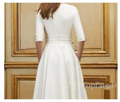 Sexy Deep V Neck Half Sleeve Short Wedding Dresses with Pockets Princess Simple Draped Garden A Line Tea Length Bridal Gowns