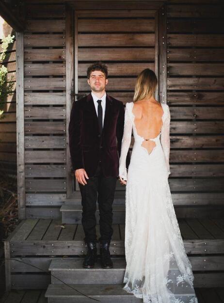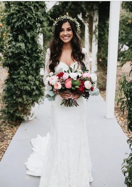 Lace Sexy Backless Sweep Train A line Wedding Dresses V Neck Illusion Long sleeve Tulle Tiered Skirts Bridal Custom Made Wedding Gowns
