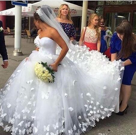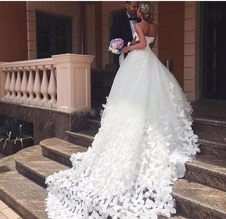 Ball Gowns Wedding Dress Handmade Butterfly Sweetheart Cathedral Train Dainty Bridal Wedding Gowns Dresses