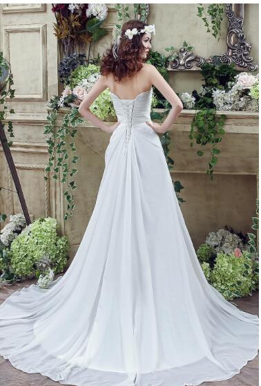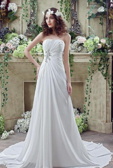 Wedding Dresses A Line Sheath Strapless Lace up Back with Beaded Crystals Long Chiffon Summer Beach Bridal Gowns