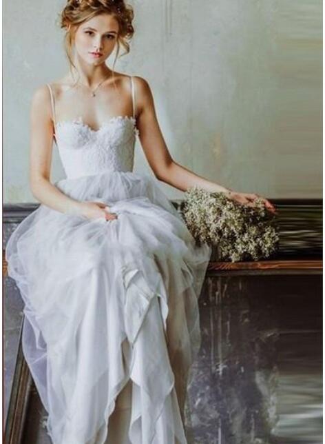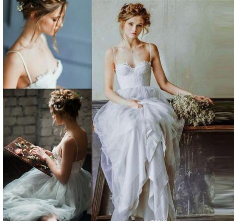 Romantic Sweetheart Lace Beach Wedding Dresses Backless Spaghetti Straps A Line Long Bohemian Wedding Dress Robe De Soiree