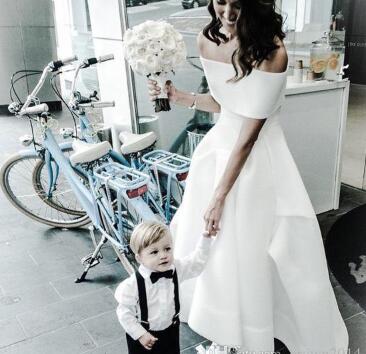 White High Low Wedding Dresses Off the shoulder Fashion Bridal Gown Ruched Beach A Line Bridal Gowns Vintage Garden Vestido De Novia