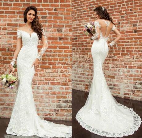 Mermaid Wedding Dresses 2019 Long Sleeve Lace Appliqued Jewel Beach Wedding Dress Bridal Gowns Custom Made