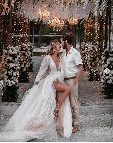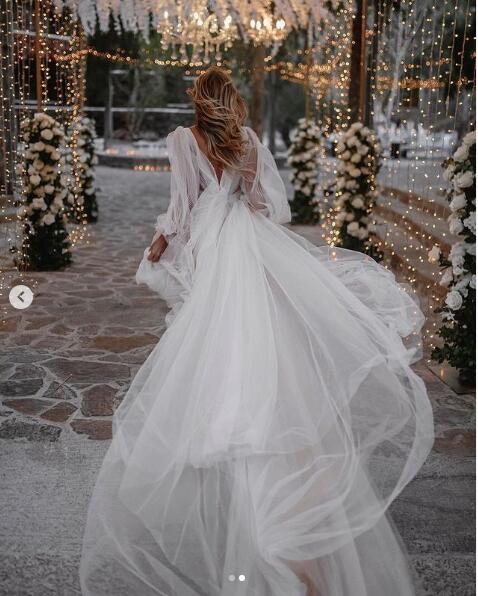 Sexy A-line Wedding Dress , Deep V-neck Wedding Dress, Tulle Long Bridal Gown