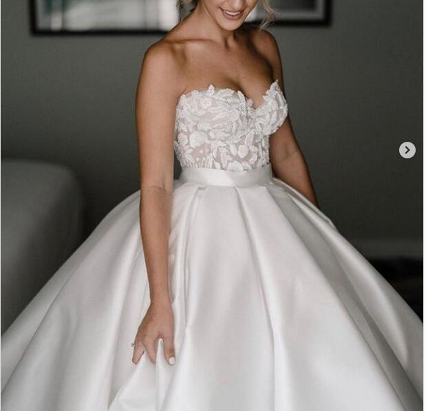 Sexy Sweetheart Wedding Dress , Unique Lace Wedding Dress, Satin Long Bridal Gown
