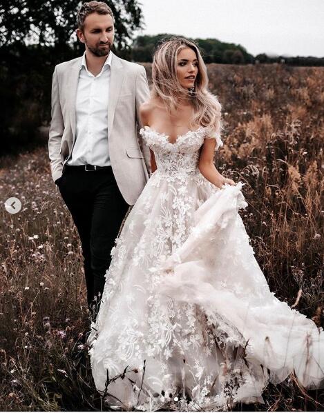 Fabulous Off Shoulder Wedding Dress, 3D Appliques Floral Bride Gown Bridal Dress