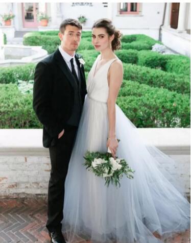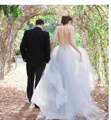 Sexy Backless Wedding Dresses with V neck A Line Ruffles Bridal Gown Custom Beach Vestidos De Novia