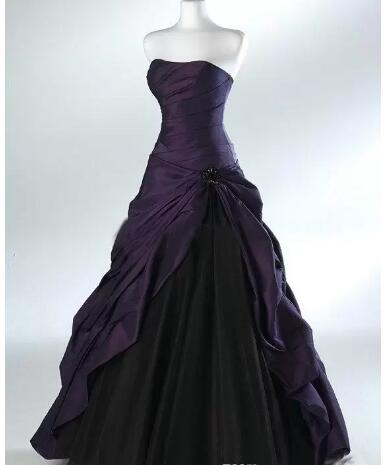 Purple And Black Ball Gown Gothic Wedding Dresses for Brides Strapless Grey Floor Length Actual Picture Bridal Gowns Vestidos de Novia