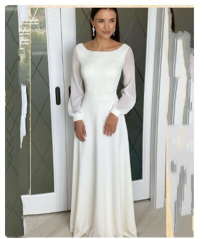 Elegant Chiffon Wedding Dresses Bridal Gowns Simple Style 2022 Long Sleeves Scoop Neck Floor Length Vestido De Noiva Custom Size Modest Design