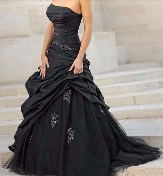 Gothic Black Wedding Dresses Ruffle Bridal Gowns
