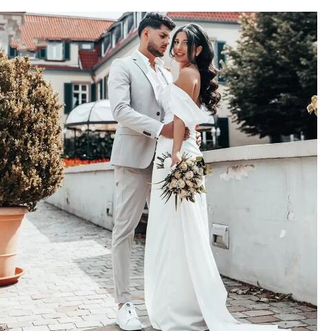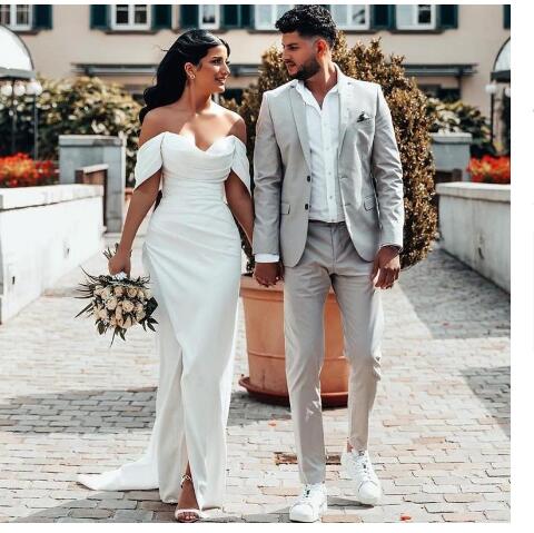 Country Side Split Sheath Wedding Dresses 2022 Pock Ups Off Shoulder Bridal Gowns Zipper Back Long Sweep Vestidos De Fiesta