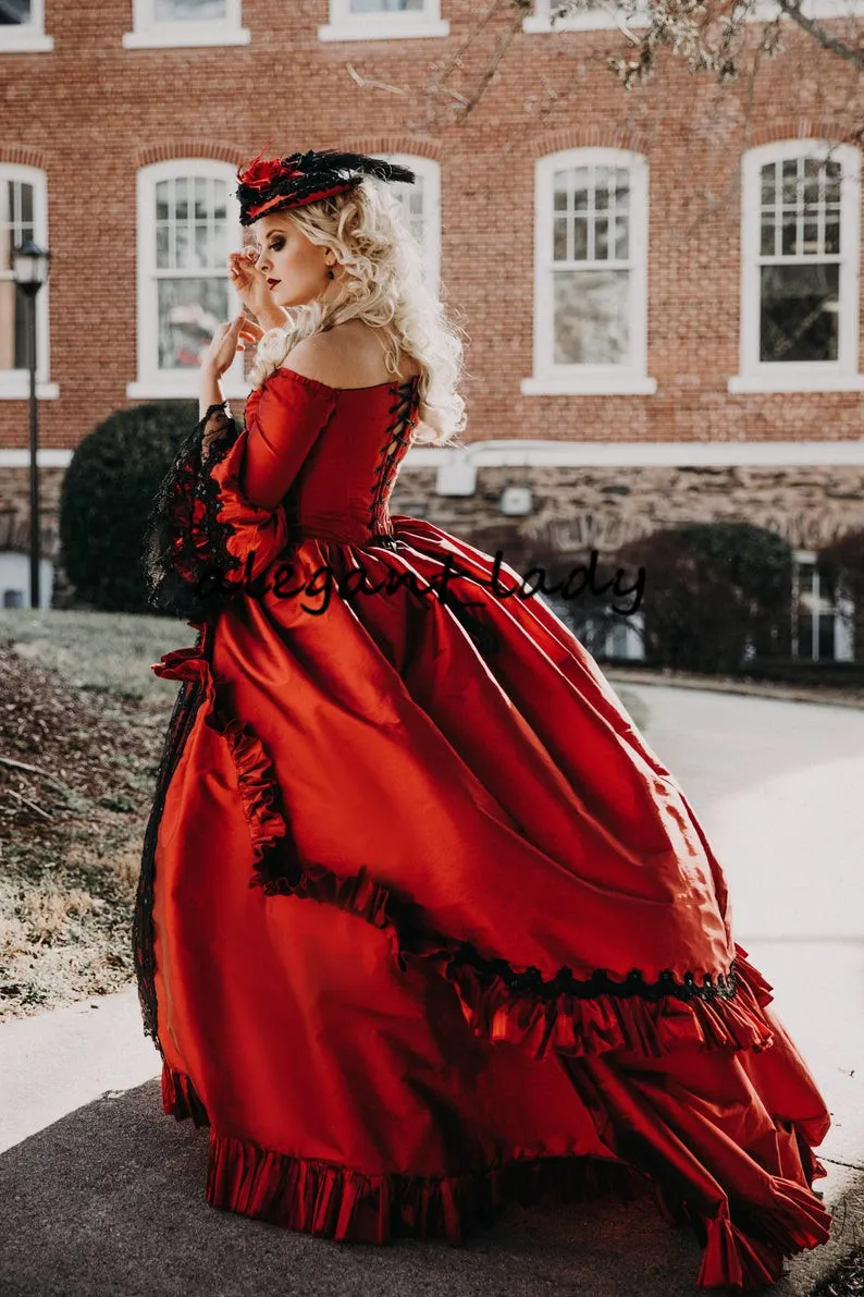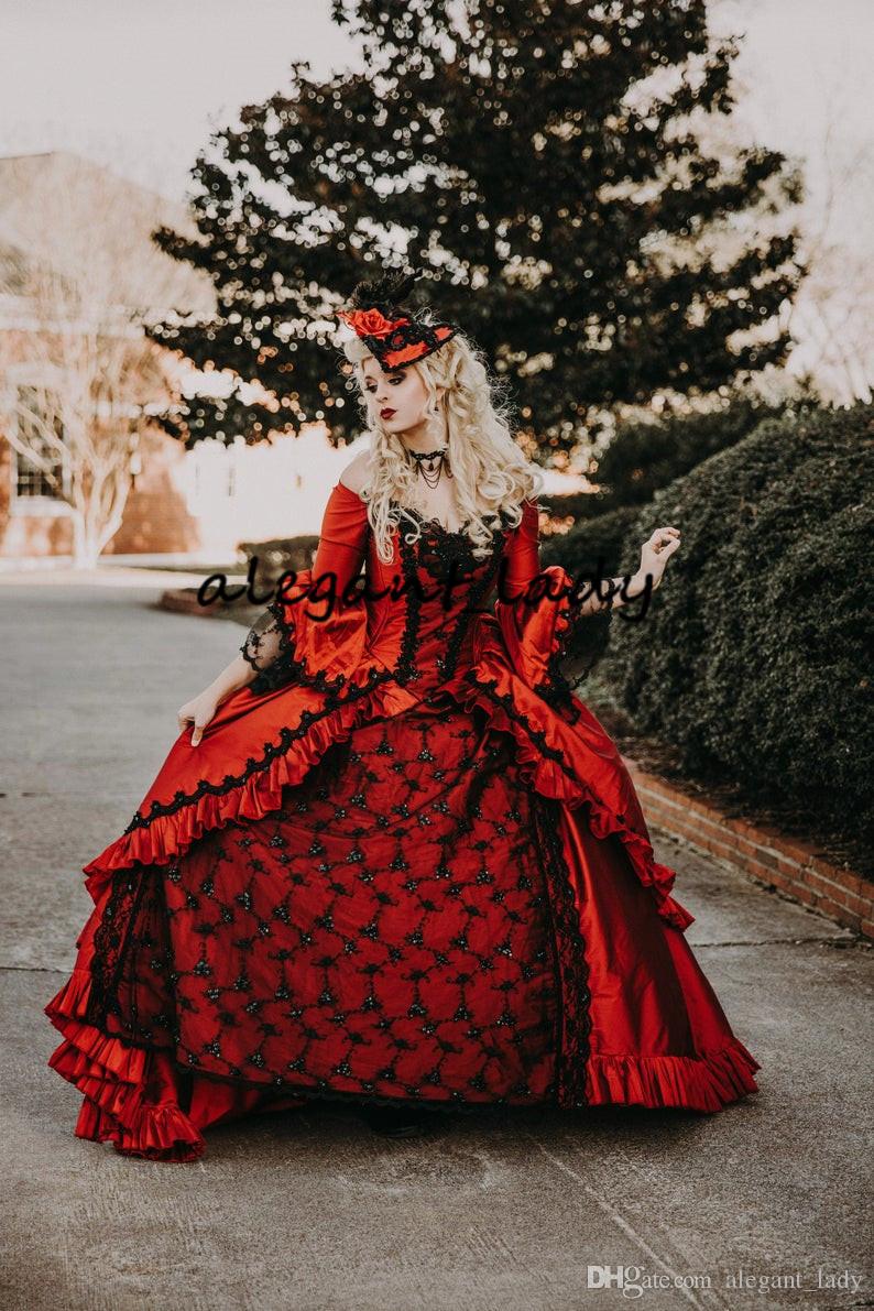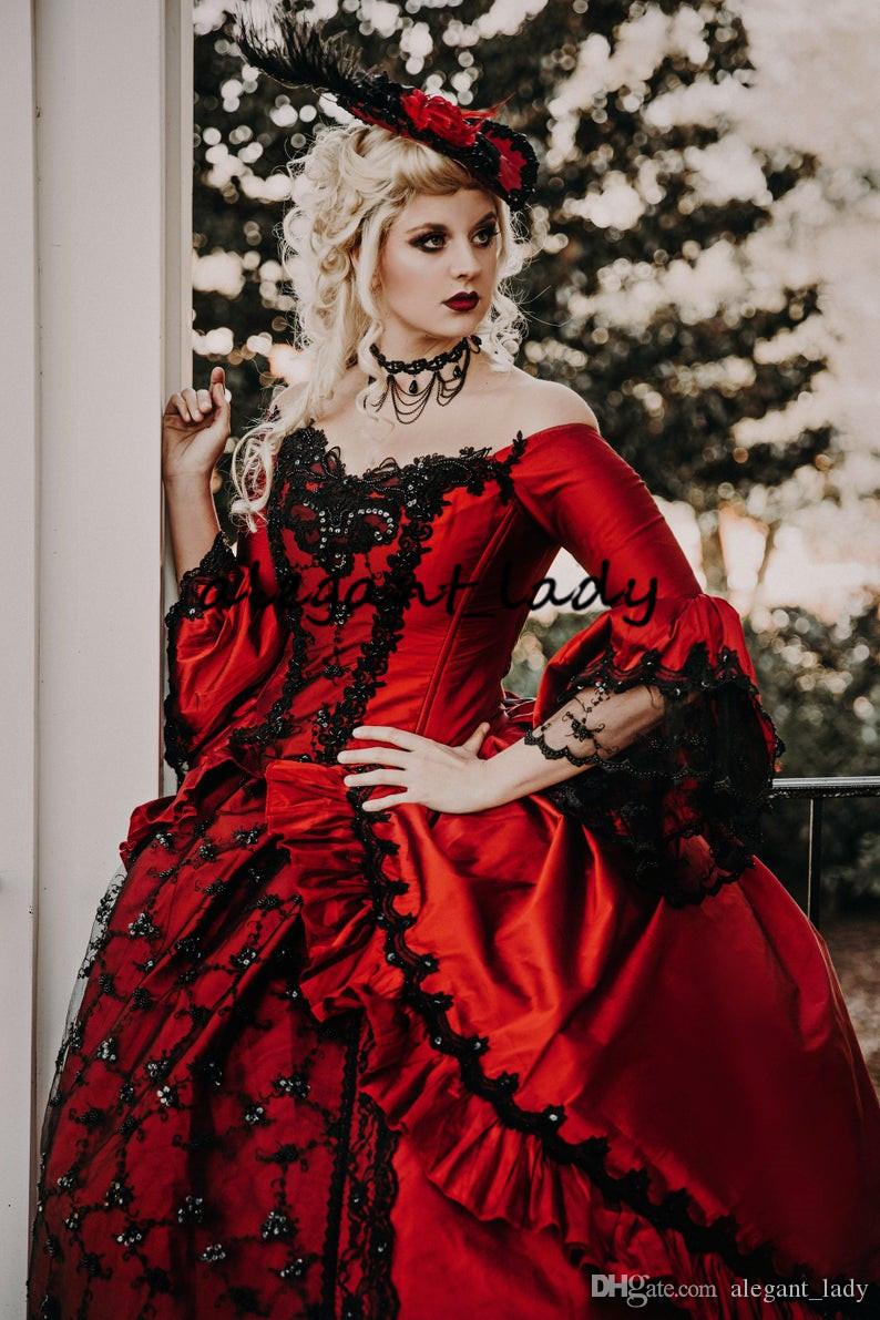 Red Black Marie Antoinette Upscale Victorian Gothic Wedding Costume Gown retro Vintage Lace-up Corset Plus Size Wedding Dresses
