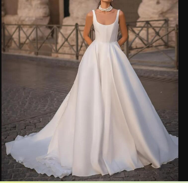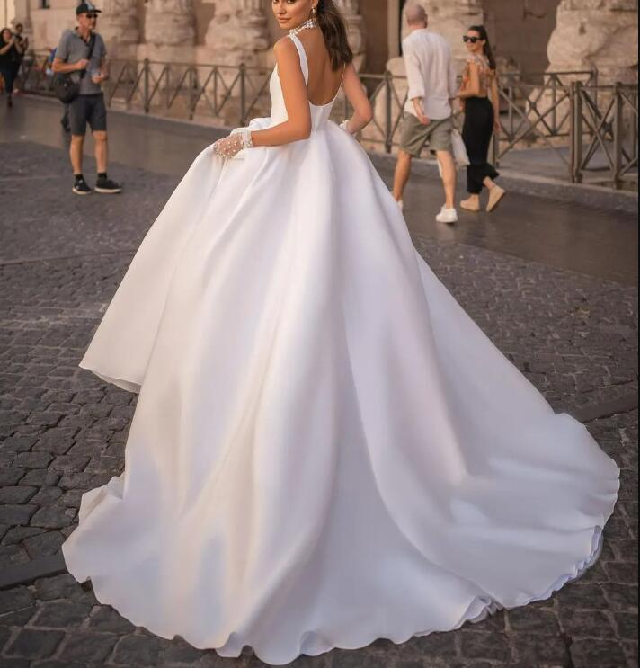 A Line Wedding Dresses for bride Straps Backless Satin Wedding Dress vestidos de novia designer bridal gowns
