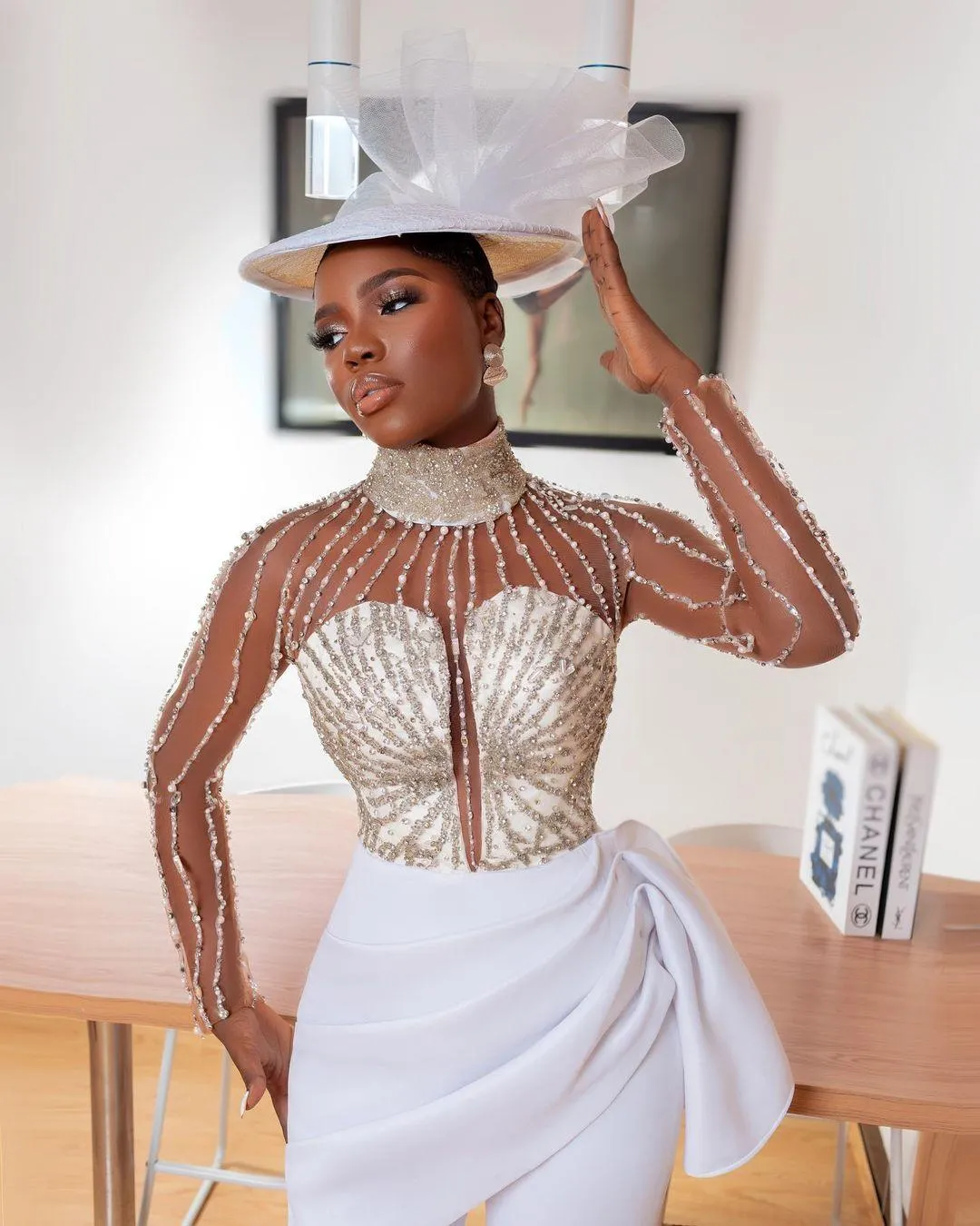 Luxurious Plus Size Arabic Aso Ebi A Line Jumpsuits Wedding Dress Beaded Crystals Stylish Bridal Party Gowns Dresses Vestidos De Novia