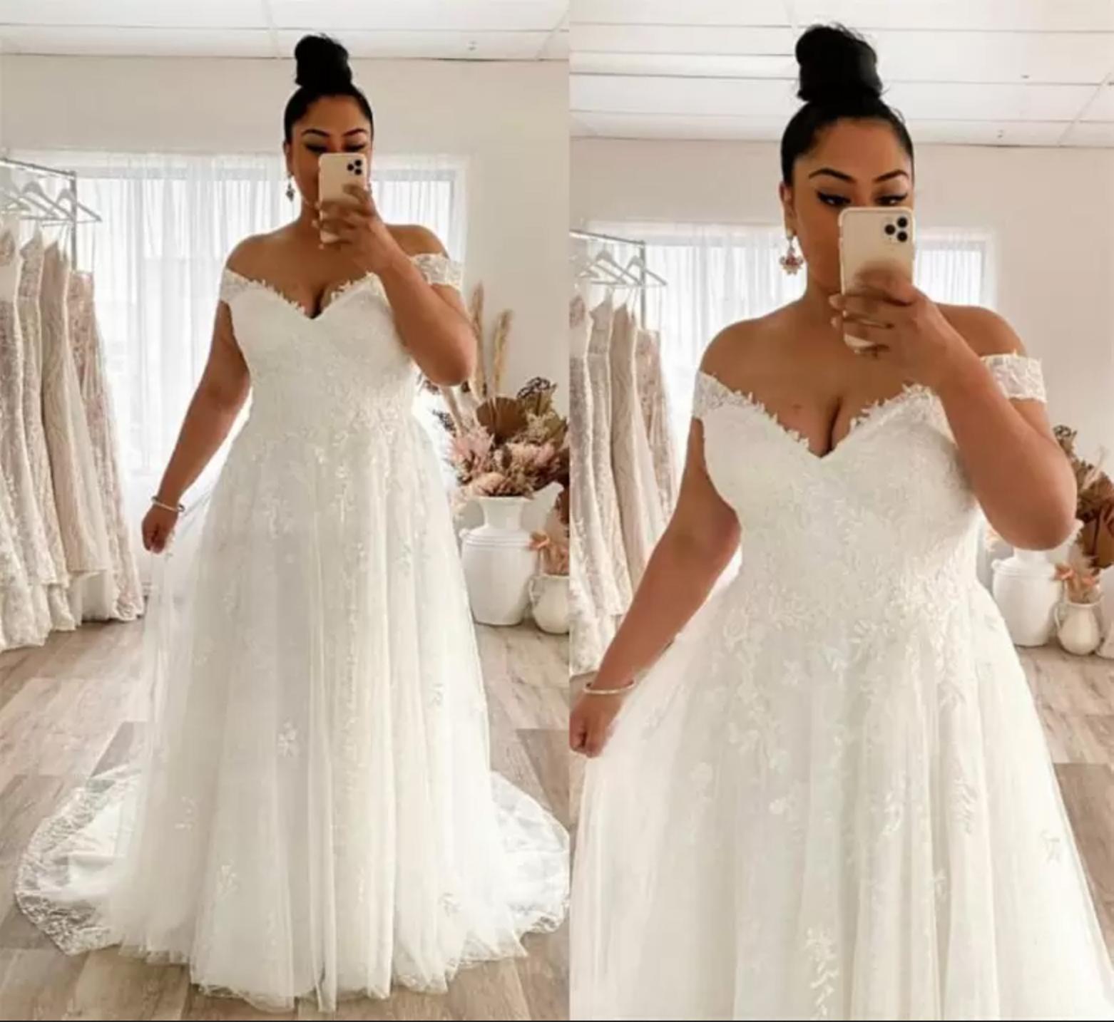 Plus Size Wedding Dress A Line Off The Shoulder Lace Big Bridal Gowns Appliques Zip Back Gorgeous Lady Marriage Dresses