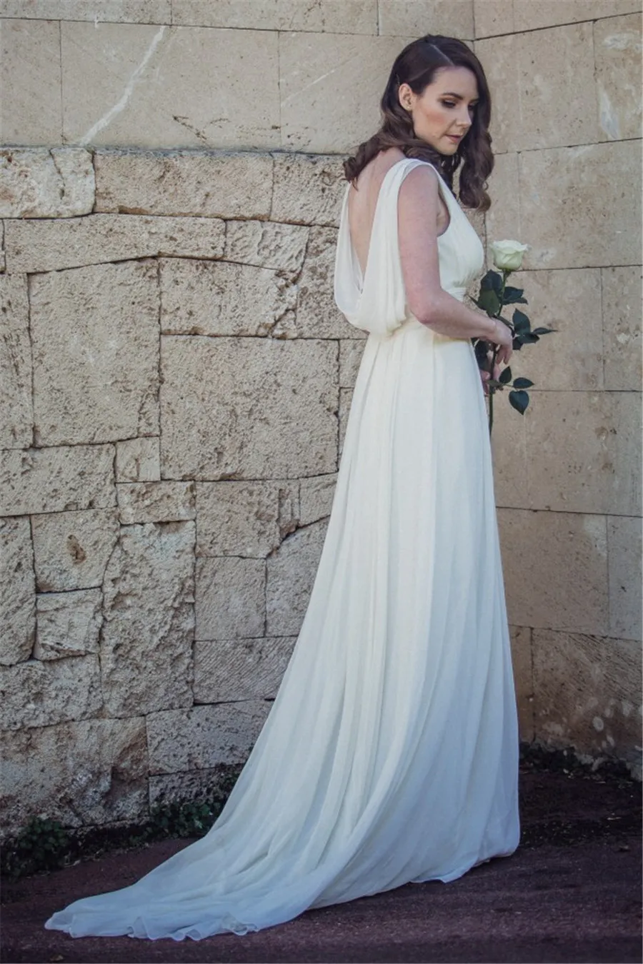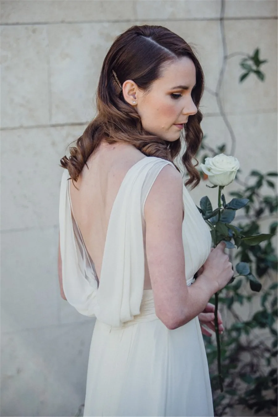 Gathered Empire Waistline v-Neckline Dramatic Scoop Back Wedding Dress Make To Order Sweep Train Bridal Collection
