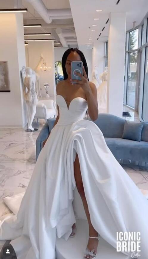 White Satin Plus Size Mermaid Wedding Dresses Sexy High Split Plus Size Bridal Party Gowns For black girl Vestidos De soiree