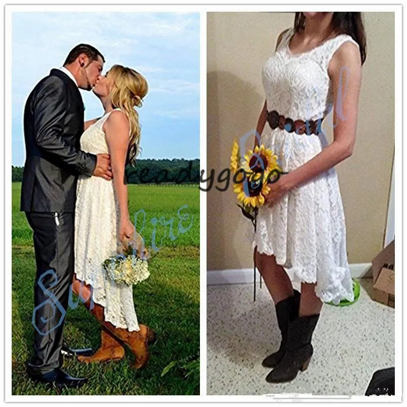 Vintage High Low Beach Wedding Dresses Retro Lace V-neck Summer Holiday Seaside Western Country Cowgirl Wedding Bride Gown