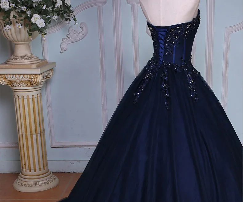 Navy Blue Ball Gown Long Colorful Wedding Dresses Sweetheart Beaded Lace Appliques Corset Non White Bridal Gowns Non Tradiitional