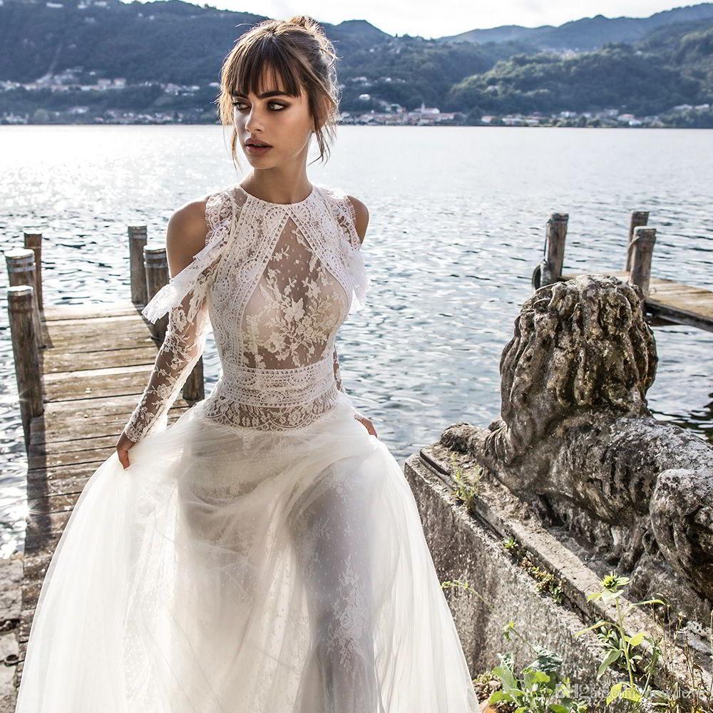 Illusion Beach Plus Size Wedding Dresses Robes De Mariee Lace Wedding Dress Bridal Gowns With Long Sleeves