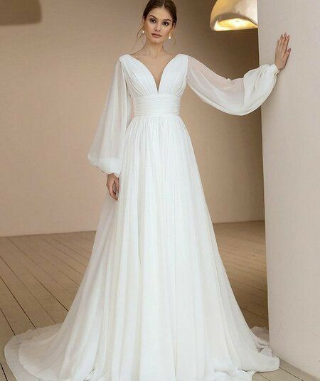 Chiffon Long Sleeve Beach Boho Wedding Dress Bridal Dress