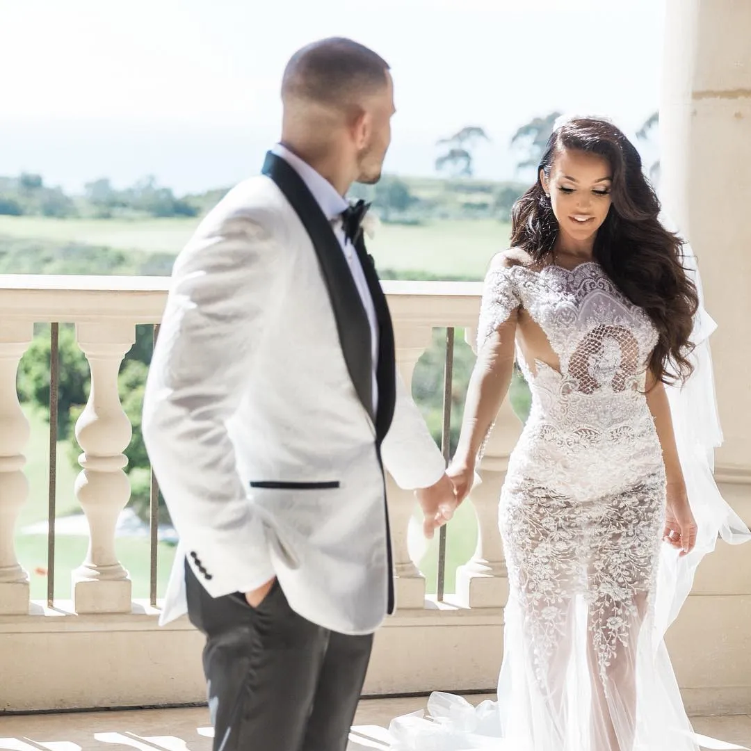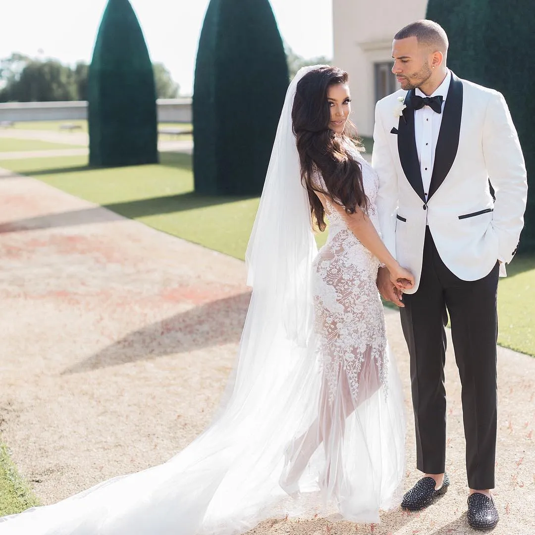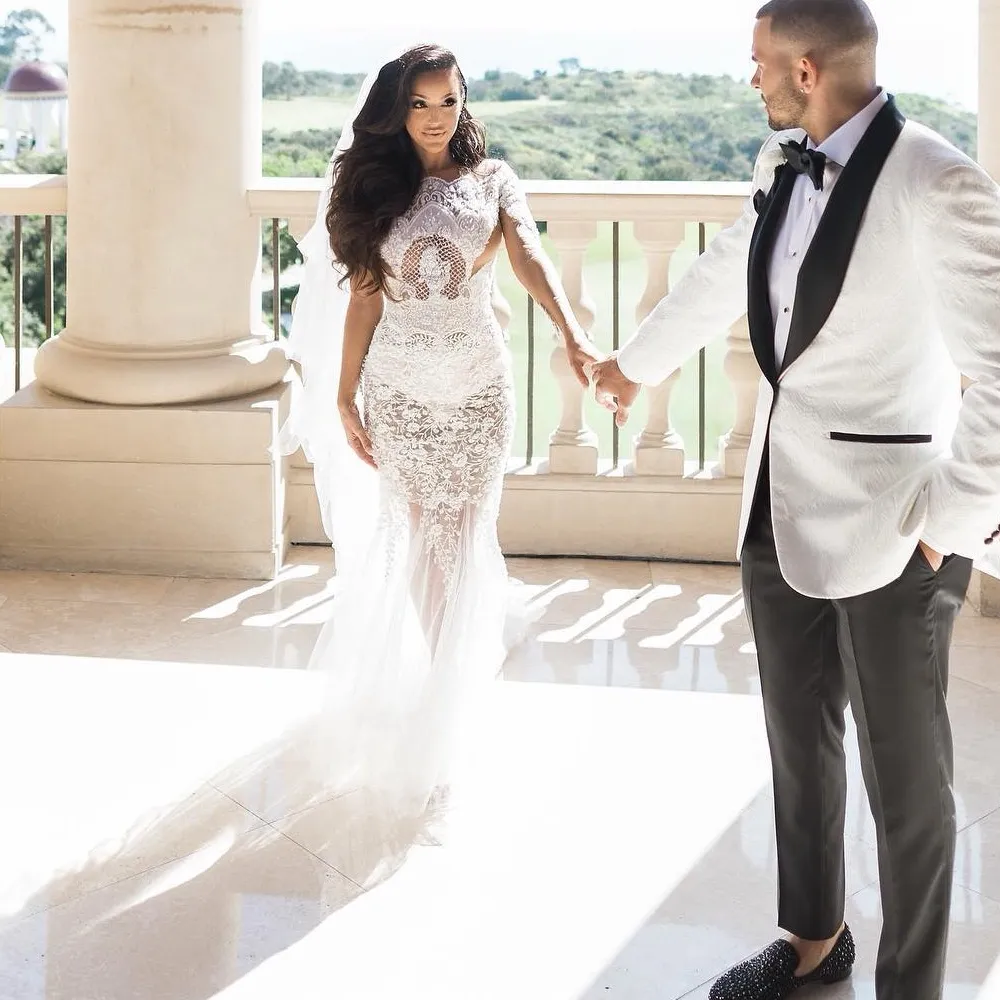 Amazing Beaded Mermaid Lace Wedding Dresses Bateau Neck Long Sleeves Bridal Gowns Plus Size Tulle Covered Buttons robes