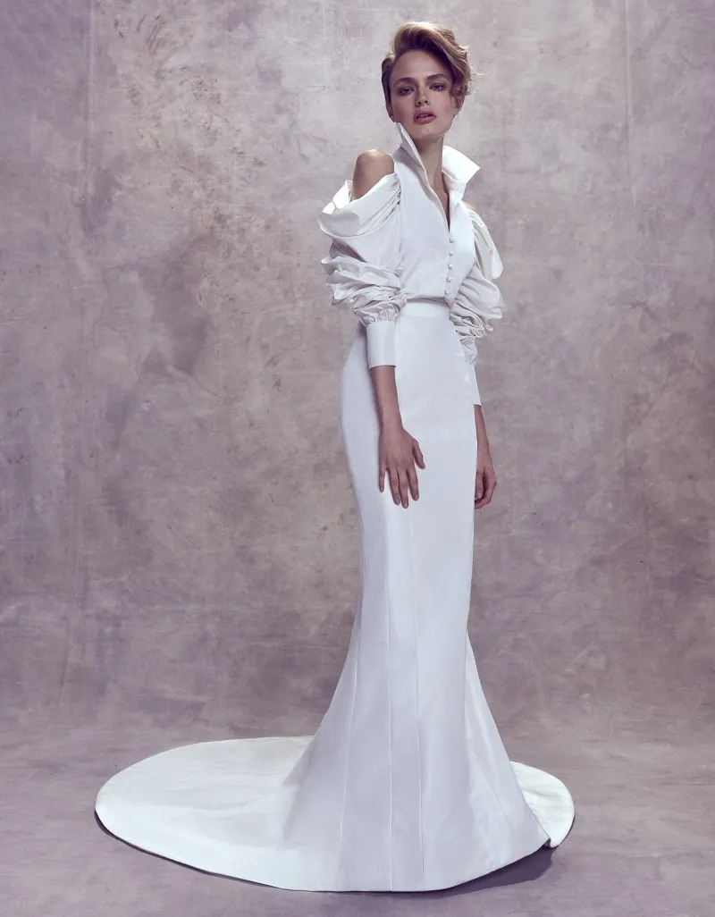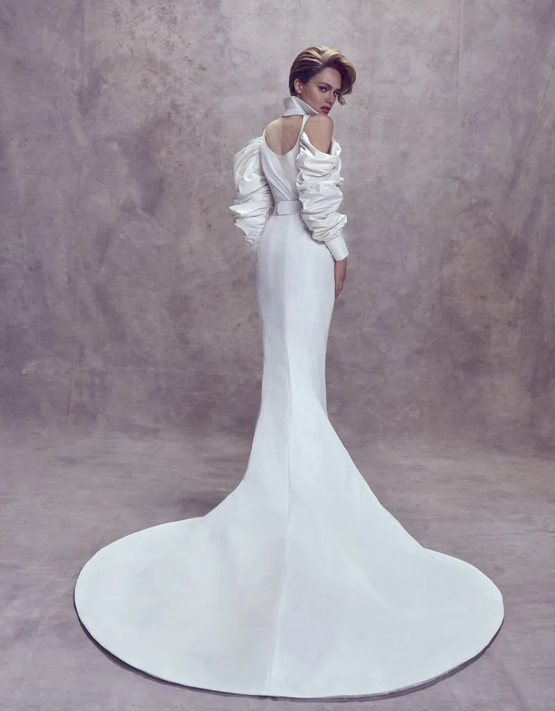 Mermaid Wedding Dresses High Neck Vestido De Novia Fashion Bridal Wedding Dress With Long Sleeves