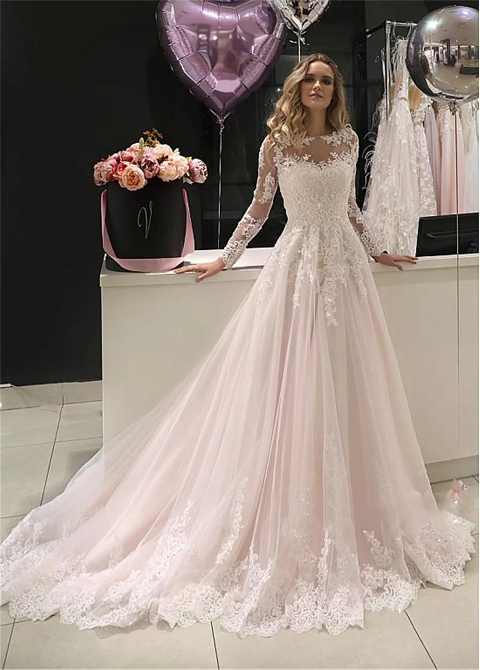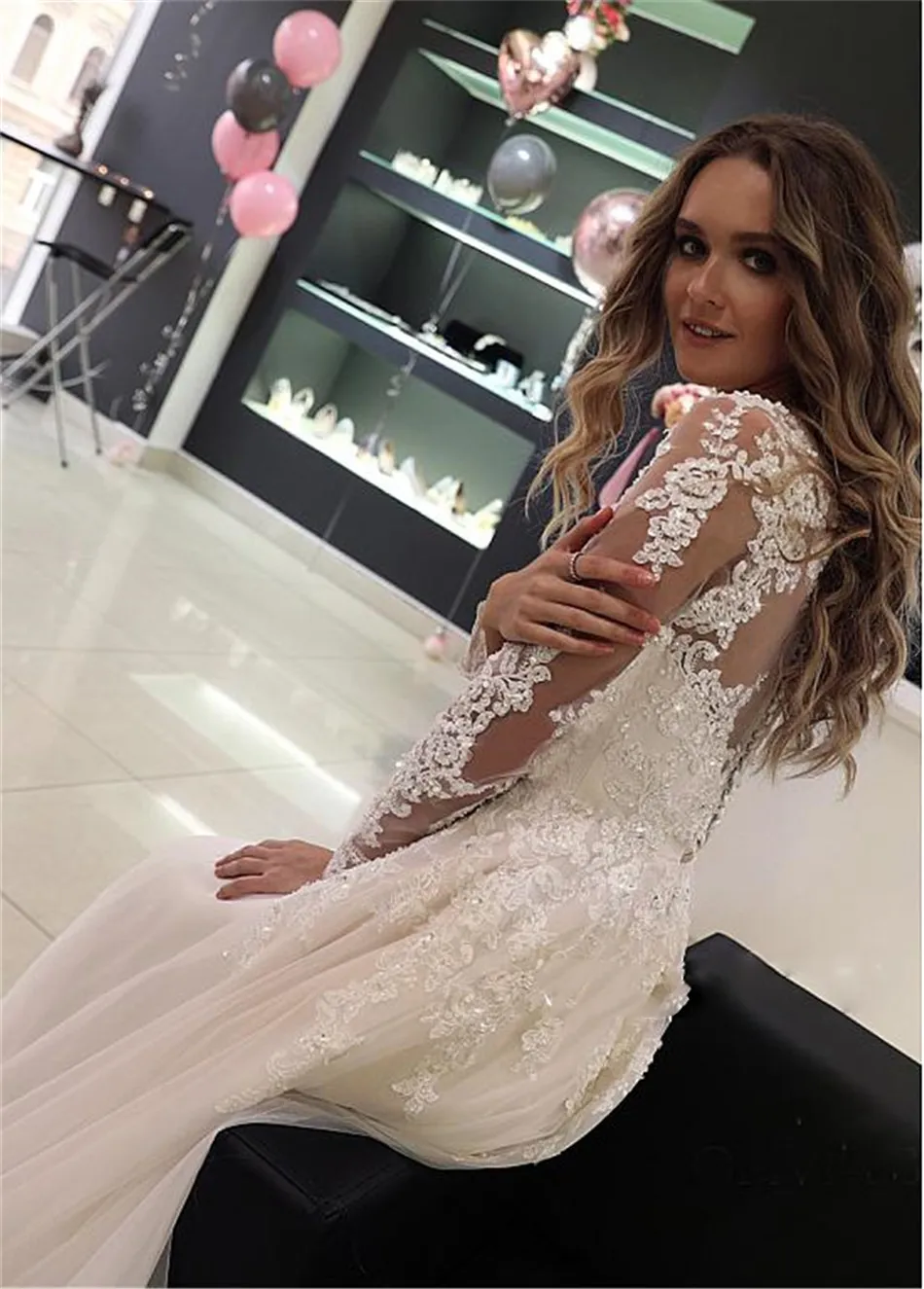 Long Sleeves Lace Appliques A-Line Wedding Dresses Bridal Gowns Beading Sequins Formal Middle East Vestidos De Novia