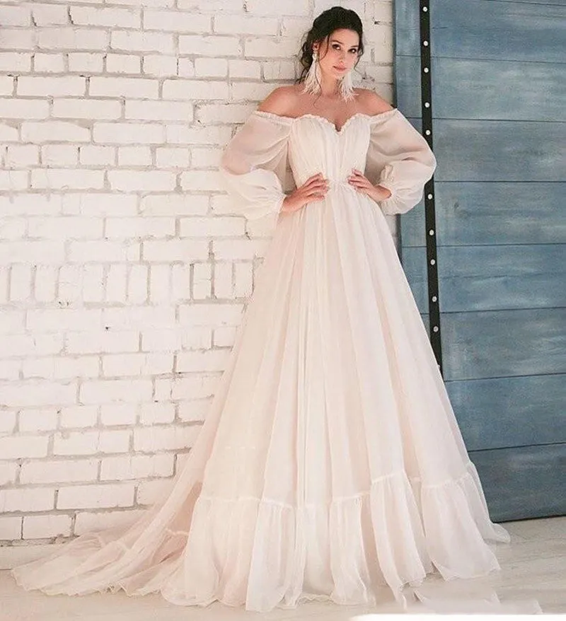 Long Sleeves A-Line Wedding Dresses Pleated Ruched Long Bridal Gowns Custom Made Fashionable