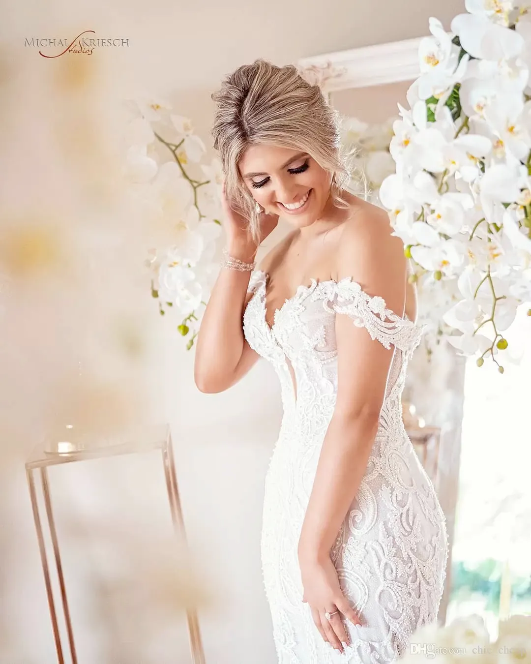 Luxurious Lace Beaded Wedding Dresses Mermaid Sexy Bridal Dresses Vintage Wedding Gowns