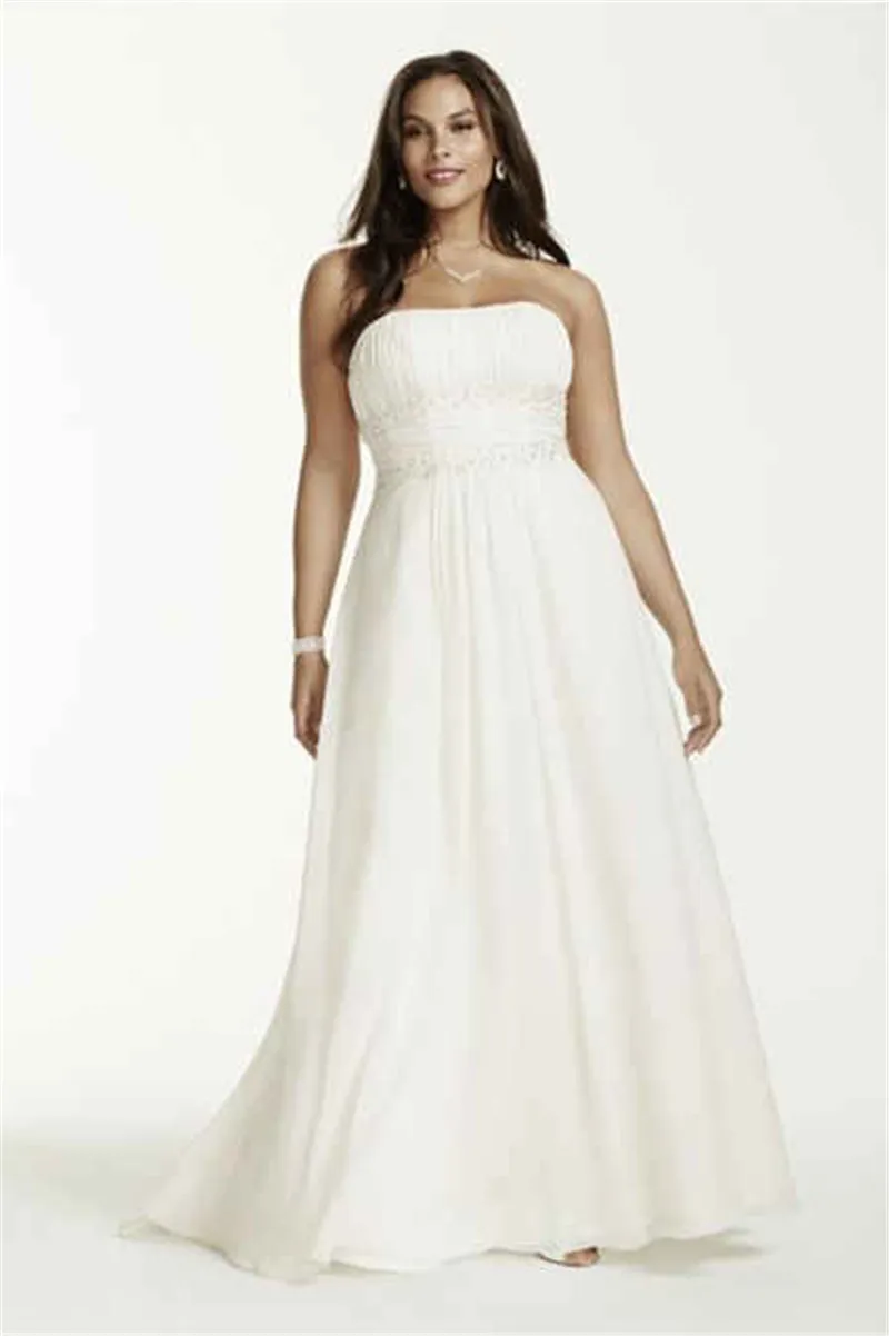 Strapless Chiffon Empire Waist Plus Size Wedding Dress Applique Lace Beading Bridal Gowns Customized Made