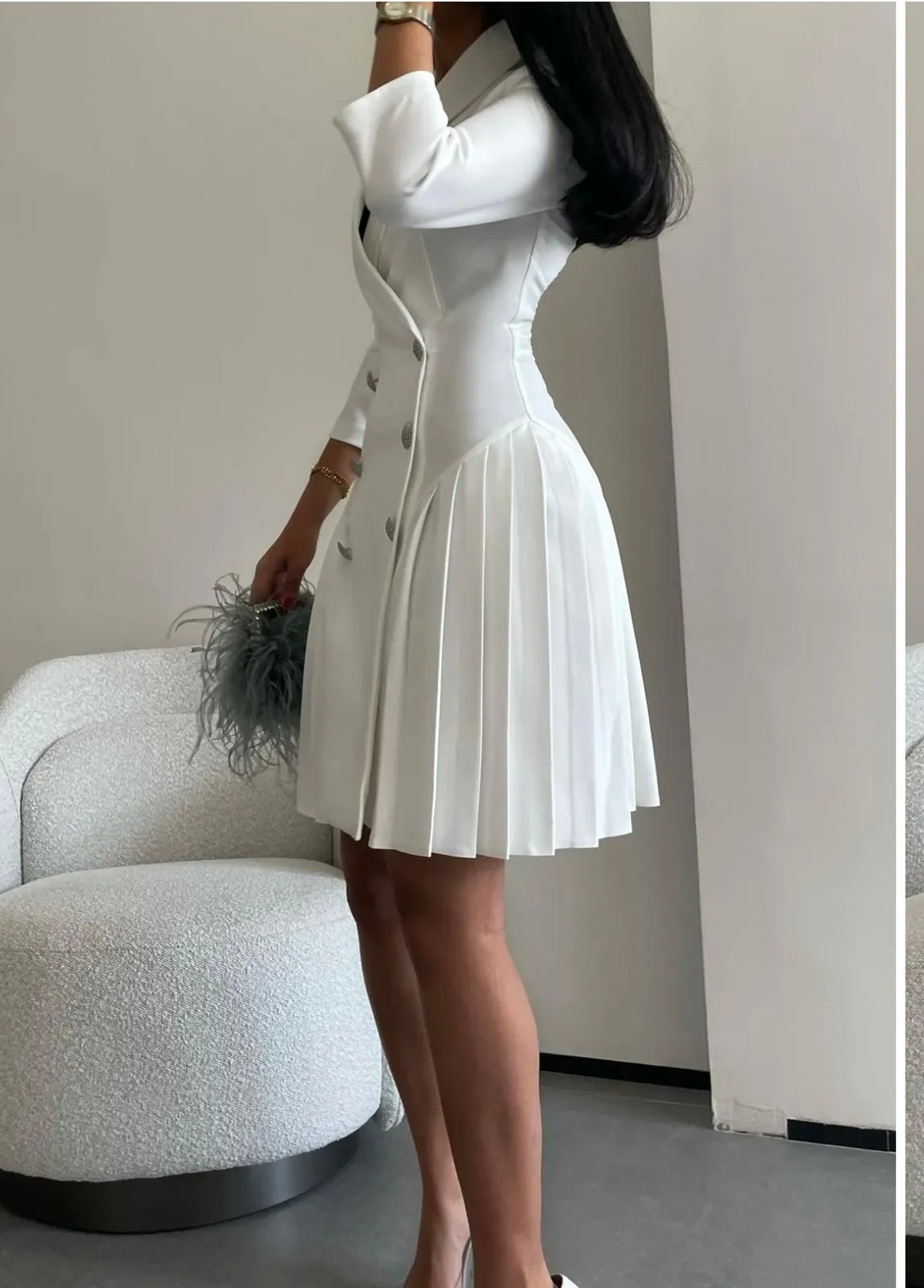 Elegant Short Crepe V-Neck Evening Dresses With Buttons A-Line Muslim Long Sleeve Pleats Zipper Back Prom Dresses Formal Party Gown