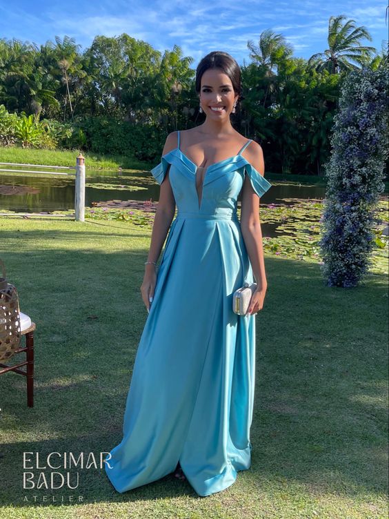 Simple Blue Off the Shoulder Prom Dress Graduation Gown Party Dress