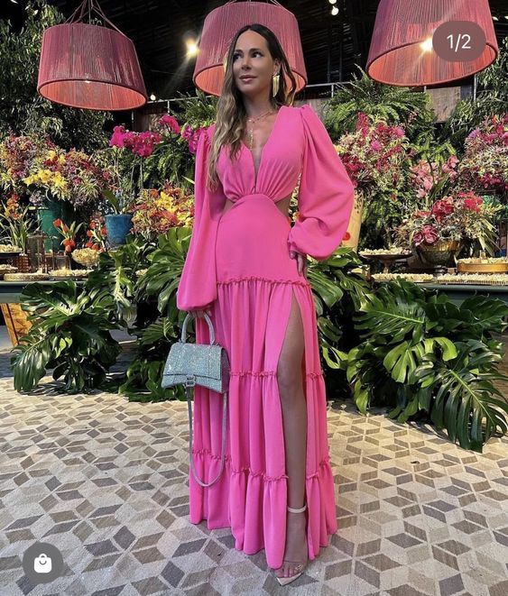 Simple Pink Chiffon Side Slit Prom Dress Formal Gown Party Dress