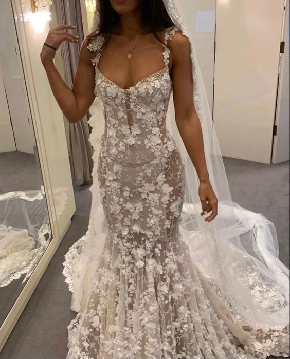 Luxury Mermaid Scoop Lace Appliques Boho Wedding Dress Bridal Gowns