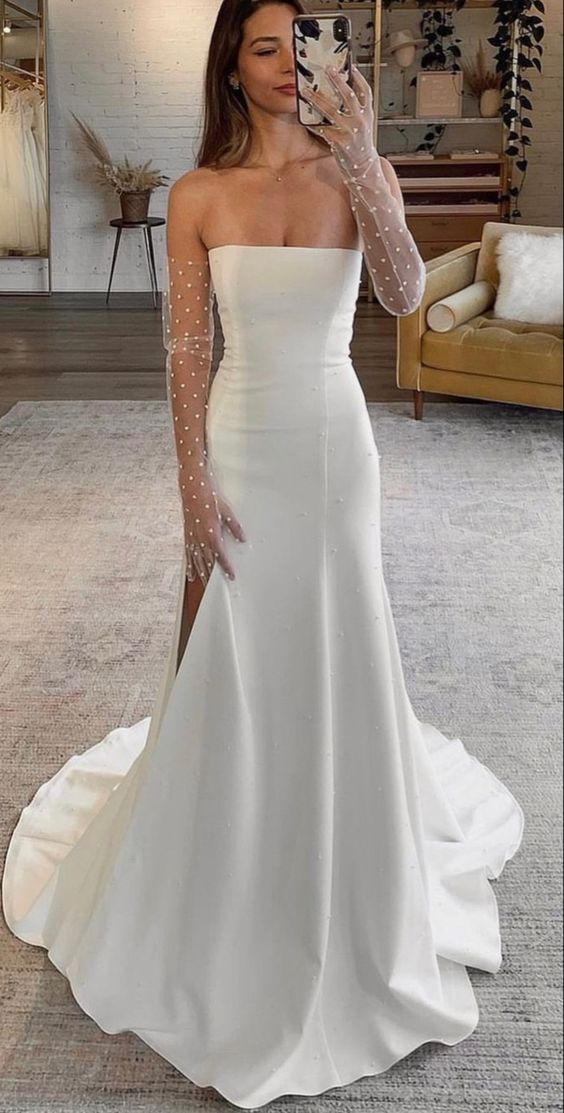 Simple Sheath Boho Beach Wedding Dress Bridal Gowns