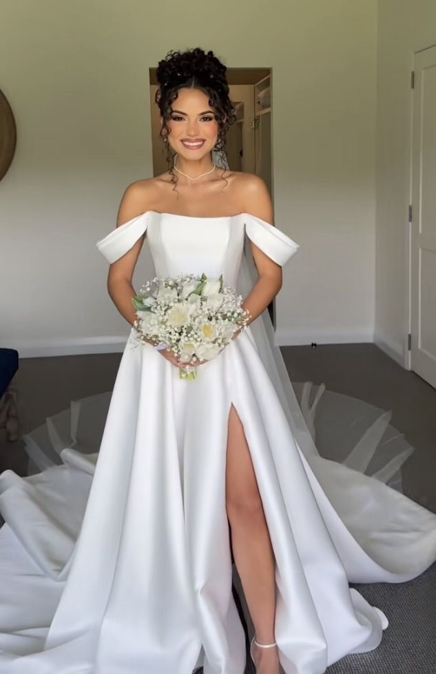 Simple A Line Off the Shoulder Beach Boho Wedding Dress Bridal Gowns