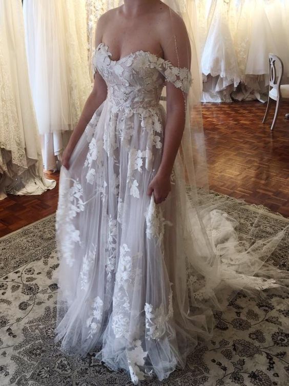 Simple Plus Size A Line Lace Appliques Beach Boho Wedding Dress Bridal Gowns