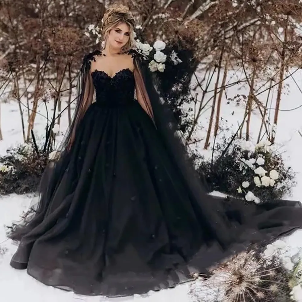 Black Wedding Dresses Formal A Line Tulle Applique Beaded Zipper Lace Up Custom New Plus Size Sleeveless Sweetheart Hand Made Flower